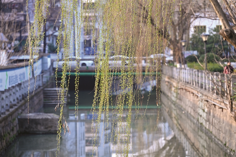 “不知细叶谁裁出,二月春风似剪刀。”最近几天,虽然气温持续偏低,寒意阵阵,但路边柳树长出的嫩绿新叶还是让人们感受到:春天的脚步近了。
