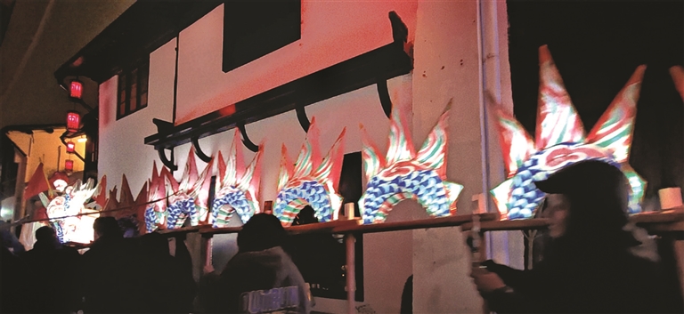 在杭州瓶窑老街,龙头马尾的彩灯创意十足;运河旁,非遗项目“板凳龙”登场,长达百米的巨龙穿街过巷,为市民带来祥瑞与祝福;萧山银泰商城的空地上,曾经的圣诞树换上了龙年发财树的“新皮肤”,绿树青翠,配上红艳艳的福字、吉祥话、灯笼,惹得不少路过的朋友合照留念。