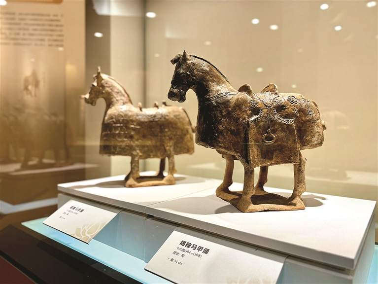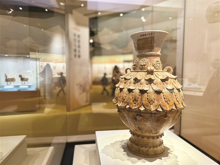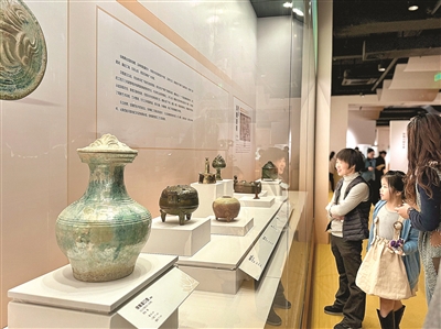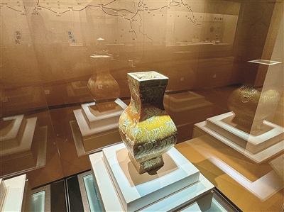 本报讯 (文/摄 记者 何可人 李霖达)昨日,跨湖桥遗址博物馆再“上新”。由该馆联合郑州大象陶瓷博物馆举办的“尘中莲花——汉唐釉陶文物精品展”,在一楼引进项目厅与观众见面。