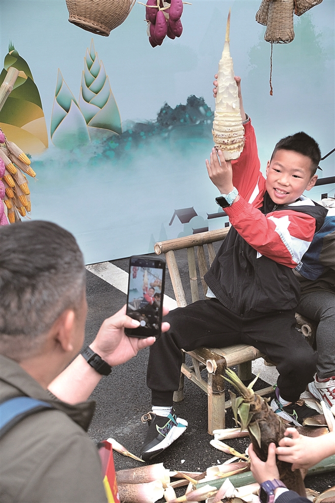 在开幕式上,精彩的表演吸引了众多观众的目光,为活动拉开了序幕。“笋王”评比争霸赛更是成为了一大亮点,拔得头筹的毛笋无疑是这场争霸赛的焦点,其高度达108厘米,直径最粗处达30厘米,引得现场的小主播们连连赞叹,纷纷用镜头记录下这根惊人的巨笋,更加兴奋地致力于挖出更大的笋。