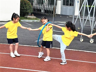 大课间时间,一年级的小朋友手脚并用,既锻炼了身体协调能力,又获得了极大的乐趣。二年级的小朋友们,手拉手围成几个大圆圈,让呼啦圈一圈又一圈地从他们的身体绕过,现场加油声不绝于耳。三年级的孩子们在趣味团体游戏中,尽情地让智慧与力量在此角逐,让团结和协作得以展现。四年级的孩子们一起挑战反应力与团结协作能力,既提高了个人心理素质,也增进了团队成员之间的信任。