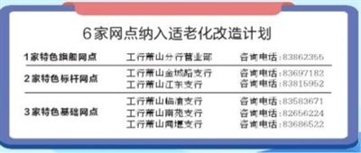 今年以来,工行萧山分行成立专班,大力推出支付便利化“一揽子”解决方案,“支付为民”工作取得了显著成效。目前,该行正在进行6家适老化网点改造计划,其中特色旗舰网点1家、特色标杆网点2家、特色基础网点3家,各项工作推进顺利。