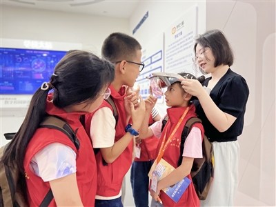 AI算力芯片、低空经济、真人3D数字分身……小记者们纷纷掏出笔记本,认真地记录下这些令人震撼的科技成就。“哇,真的好神奇啊!”“这里能拍数字人呀!”小记者们兴奋地喊道。看着眼前的芯片、模型、无人机,有的小记者与电脑AI互动,有的小记者伸长脖子一探究竟,还有的小记者围着陈霄老师问着各种自己感兴趣的内容。他们穿梭于各个展厅与各项展品之间,尽情感受科技的魅力。