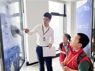 带着对“人工智能”核心技术的期待,小记者们迫不及待地走进北京大学信息技术高等研究院展厅,映入眼帘的首先是研究院副院长、区青科协副会长方赟温暖的笑容,在他专业而又亲切的讲解下,各项“硬核”科研成果缓缓揭开面纱。