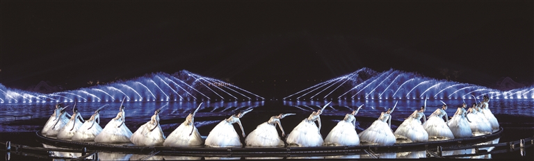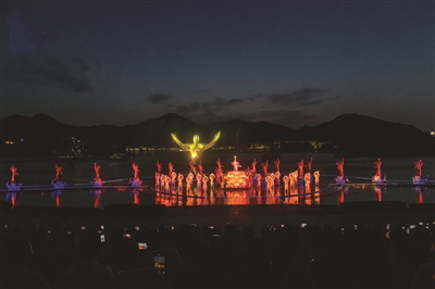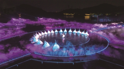 本报讯(记者 童宇倩 项哲斌)昨日傍晚,小雨转阴。湘湖畔,晚霞染红了一波碧水,几只鸟儿在湖面上空欢快飞舞,似乎在迎接一场盛会的到来。当晚,中国首部亚运遗产大型数智湖景演艺秀《湘湖·雅韵》在湖山广场迎来正式公演。