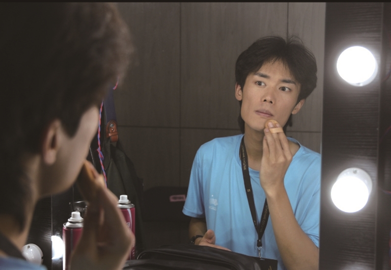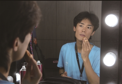 高个子,浓眉大眼,性格沉稳,这位正在化妆间上妆的年轻小伙叫张苏鑫。刻苦的练习加上反复的化妆,让他的脸上起了不少痘痘。