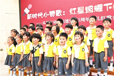 一首首歌曲,跳动着一颗颗中国心;一句句歌词,表达着他们的爱国心。此次红歌会是瓜沥二幼创建“红星节”红色主题系列活动之一。幼儿园借助多元活动,将红色基因融入各班幼儿活动,让红色文化滋养每一颗童心。在日常生活中,孩子们讲述红色绘本故事,学会感恩、珍惜现在的美好生活;头戴红军帽,身穿红军服,参加“红色小勇士”障碍挑战赛,进行“小小侦察兵”寻宝游戏,在快乐奔跑中感受红色力量。同时,他们还拿起画笔,走进红色故事创想实验室,开启红色主题的创意写作和插画创作,感悟红色历史的厚重感。他们还在“红色种子计划”植物园、“绿色小农夫”红色农业体验营、“红色小记者”新闻直播间、“红色故事”流动图书馆,注入“红色”养料,浸润心灵,感受红色正能量,争做闪闪小红星。值得关注的是,幼儿园进一步创新方式方法深化红色教育,开展“声音里的红色记忆”有声读物制作活动,建立“红色声音”档案馆,让党的声音被更多人听见,传播得更开、更广、更深入,让百年党史照亮成才之路,让红色精神代代传承。