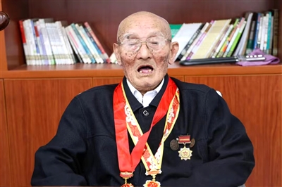 姚纪昌 每一枚军功章都铭记着战火纷飞的岁月,渗透着英雄的鲜血,也同样记载着他的传奇人生。 姚纪昌,出生于1923年2月,今年已是102岁高龄。姚老个子不高,虽牙齿有些脱落,但仍精神矍铄。回忆起过往战斗时的经历,姚老说,一切仿佛还历历在目。“那时作战很艰苦,渡江时许多船只都翻了。”他1948年1月入伍,原为某部队一名通讯员,参加过淮海战役、渡江战役,在上海、杭州、舟山等多地参加过战斗。 “记得印象最深的是有次坐火车从南京前往上海,中途火车遇到轨道中断,我们被迫徒步行军到上海黄浦江口,又在那里打了几天几夜的仗,这一仗打得真艰难。”姚老说。“打仗就会有人牺牲,您当时害怕吗?”面对记者的提问,姚老笑着说:“像我这样能够活到今天,已经是非常幸运了。现在的生活越来越好,这也正是我参加革命时候想要的生活。”如今,姚老身边还一直保留着淮海战役纪念章、渡江战役纪念章以及中国人民解放军华东军区政治部制的《功劳证》。1951年,姚纪昌还荣立四等功一次。 1954年,姚纪昌复员回家,此后他又先后担任过姚江岸生产队队长、大队党支部书记、村民兵连长、治保主任等,为家乡建设贡献自己的一份力。1959年6月入党的姚纪昌,2021年收到了中共中央颁发的“光荣在党50年”纪念章。 |