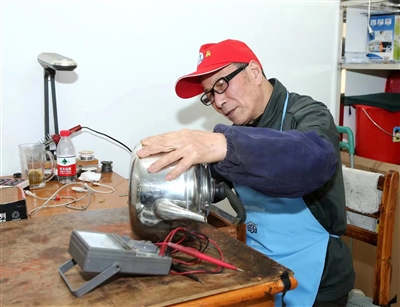 彭勇敢 走进城厢街道东阳桥社区文化家园二楼的老彭维修站,一眼就能看到桌上放着一本维修记录本。翻开一看,上面清清楚楚地记录了几月几日、谁、修理了什么家电、是否修好等内容。 老彭维修站的主人是77岁的彭勇敢,13年来他已免费为当地居民修理大小家电2000余件。说起掌握修理这门手艺,不得不提彭勇敢在军营度过的那段峥嵘岁月。1965年12月,18岁的彭勇敢应征入伍,在部队学习无线电修理技术。因工作热情,业务能力突出,彭勇敢曾多次被评为“学雷锋标兵”“雷锋式干部”,还参加了1970年国庆阅兵仪式。1978年4月,彭勇敢转业分配至萧山邮政管理局工作。 从岗位上退休下来后,彭勇敢发挥余热,当起了社区志愿者,免费帮居民修理小家电。在和居民的聊天中,他经常会听到这家的电热水壶坏了,那家的电饭煲坏了,大家找不到地方修。自己又刚好学过无线电修理,何不试试?说干就干,彭勇敢买来工具和参考书,一边琢磨一边试验。这些年,他的修理技术一直在进步,大家都叫他“万能维修手”,有时碰到大家电需要修理,他还会带着工具到居民家上门服务。修好家电大家都很高兴,彭勇敢也乐在其中,总是笑着说:“作为一名老兵,大家有需要,我就努力为大家服务,退役不褪色。” |