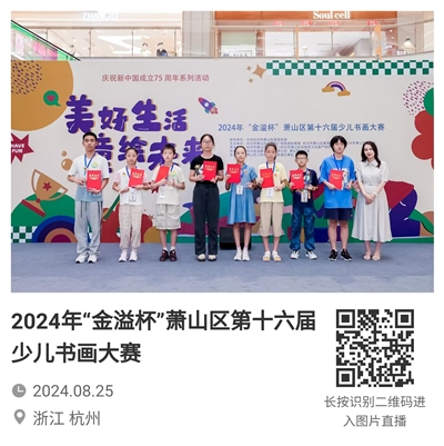 据悉,从2007年开始,萧山区少儿书画大赛和少儿故事演讲大赛,每年都如期举行。历年的比赛都是从班级——年级——学校——乡镇,经过近半年的层层选拔,优秀的选手最后才有资格参加区赛。16年来,通过持续不断的比赛,一大批少儿艺术人才脱颖而出,为萧山争得了许多荣誉。(萧文)