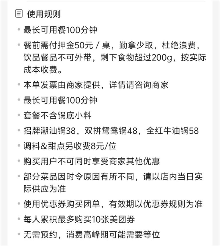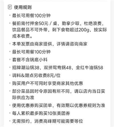 | @Unwind 团购的竟然到店还要付钱! 昨天带侄女去吃饭,在某平台上选了一家自助火锅店,付款前还好多看了一眼,锅底另外收费的,价格有丢丢小贵,单人自助六七十元一位,锅底就要四五十元一锅,调料还要另外收费,遂放弃这家,去吃了烤肉。以前没遇到过这样的,一般团购了券不是应该锅底、餐位费啥的就都包含在里面了吗?搞不明白,可能我见识少了吧。 |