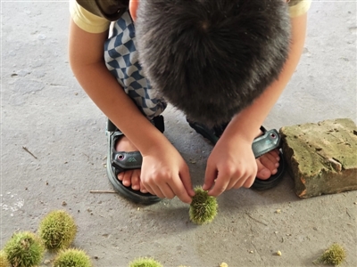 | @读友_66M5D9 秋天是倒放的春天 天气好,身体好,带上娃。捡到的快乐,就是一筐带刺的板栗。 吃不吃不重要,孩子享受过程最重要。都说秋天一定要见一次板栗,寓意,“栗”尽一生,不离不弃。 |