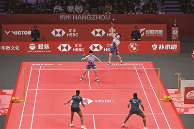 昨日,2024世界羽联世界巡回赛总决赛在杭州奥体中心体育馆开赛,来自世界各地的64位顶尖运动员参赛,争夺男子单打、女子单打、男子双打、女子双打和混合双打五个项目的冠军。 记者 范方斌 摄