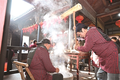 近日,2025年河上年俗文化节暨第二十届东山年糕节在河上镇东山村开幕。搡年糕、抢糕花、背马纸罗伞送福……男女老少都沉浸在热闹欢乐的节日氛围中,体验浓浓的年味。