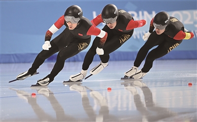 图为10日夺得男子短距离团体追逐赛冠军的中国队选手在比赛中。