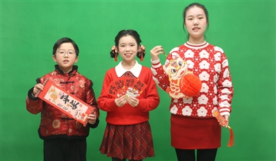 随后,三位小主播也轮番上阵,用各自独特的方式表达着对观众的节日祝福。胡馨源认真思考后,朗声读出:“谁家见月能闲坐,何处闻灯不看来。祝大家欢聚一堂!”胡新晨声音甜美地说:“千门开锁万灯明,正月中旬动地京。愿大家前程似锦!”张恩瑞则语气坚定地送上祝福:“火树银花合,星桥铁锁开。祝大家梦想成真!”