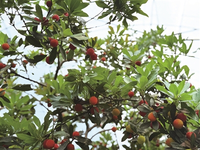 “第一次尝试大棚杨梅,目前来看效果很不错。”基地负责人杜谅满脸笑意地说,大棚内热量往上聚集,因此山势越高,杨梅成熟越早。虽然高处的杨梅已有泛红可供尝鲜,但考虑到品质,大面积采摘还需再等一周左右。“我们的杨梅口感鲜美中带点酸味,再等几天,味道会更加完美。”